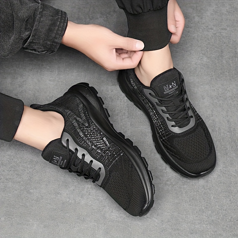 Men'S Breathable Knit Sneakers - Low-Top Casual Sneakers with Faux Upper, Fabric Lining & Durable Sole for Casual Attire, Gym, Skateboarding - Black, Sneakers, Gym Footwear, Sleek Shoe Design, Flexible Footwear