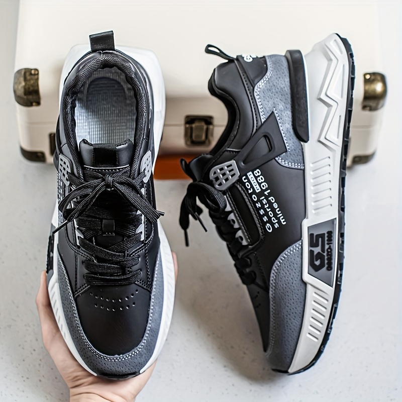 Men's Non-Slip Sneakers - Slip-Resistant Cushioned Platform, All-Terrain Traction for Gym, Running, Casual - Low-Top Sneakers Black/Gray/ - PU Upper & PVC Sole - Lace-Up Athletic Footwear, Outdoor Activities, Streetwear Style, Breathable Lining, Versatile Kicks, Fitness Enthusiasts