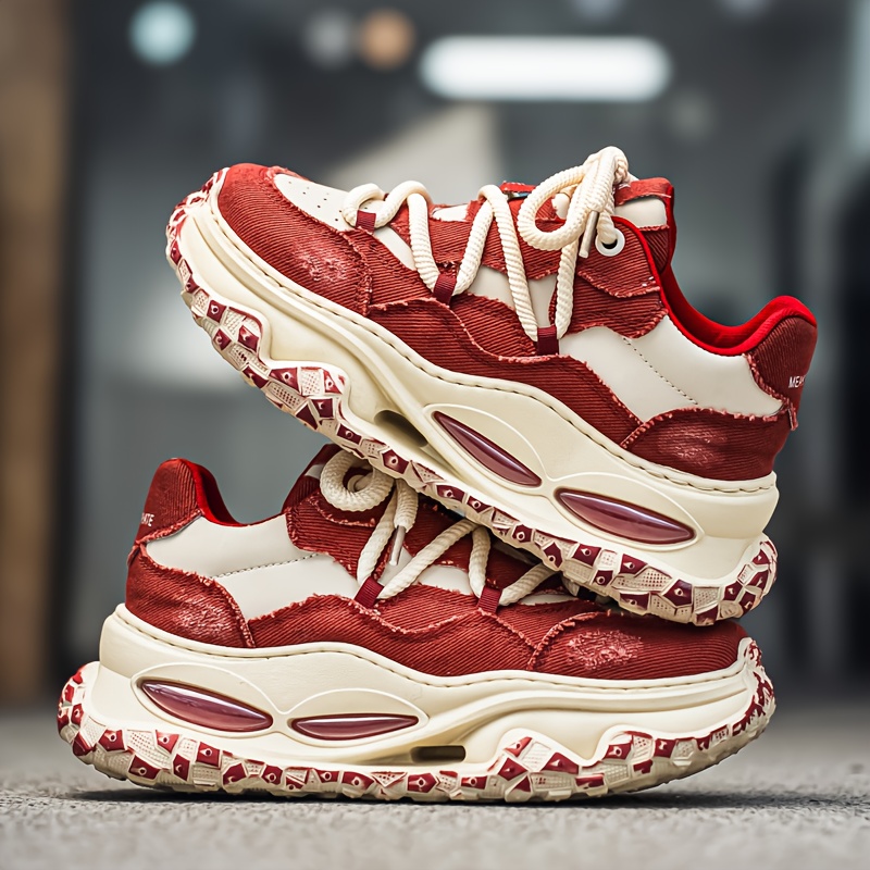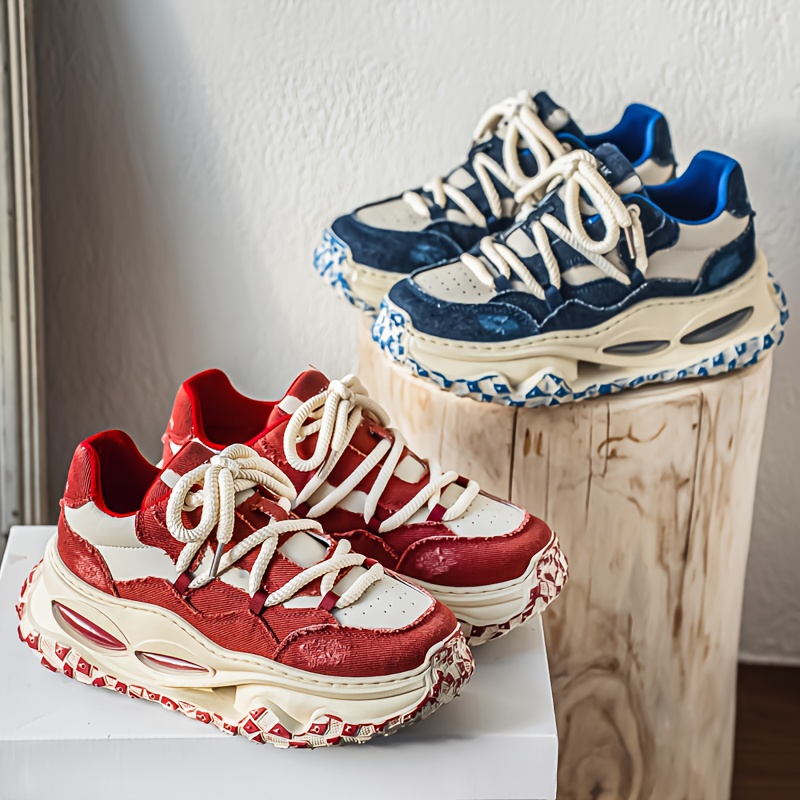 Four Seasons New Men's Low-Top Thick Sole Minimalist Fashionable Versatile Breathable Mesh Casual Sneakers, Outdoor Walking, Style, Sleek Style, Fashionable Shoes, Durable Material, Comfortable Fit, Round Toe, Laceup Sneakers, College Students, Urban Style
