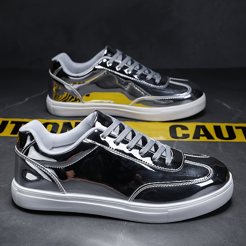 Men'S Stylish Solid Color Skate Sneakers - Non-Slip Lace-Up Low-Top Sneakers with Metallic Accents, Breathable Fabric Lining & EVA Cushioned Sole for Outdoor Casual Wear, Skate Shoes, Sleek Shoe Design, Durable Footwear