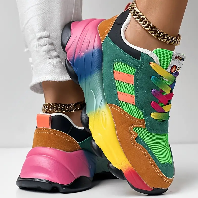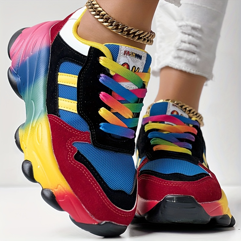 Women'S Bold Red to Gradient Sneakers - Lace-Up Low-Top Shoes with Thick Cushioned MD Sole, Breathable Fabric Upper - All-Season Everyday & Formal Shoes in Green, Yellow, Orange, Pink, Purple, Blue, Teal, - Non-Slip Outfit Staple for Women, Versatile Footwear, Vibrant Design, Comfortable Fit, Fashion Enthusiasts, Style Conscious Consumers, Small Clear Boxes & Packages, Clear And Transparent Boxes, Thick Cushioned Shoes, Multi Color Styles, Non