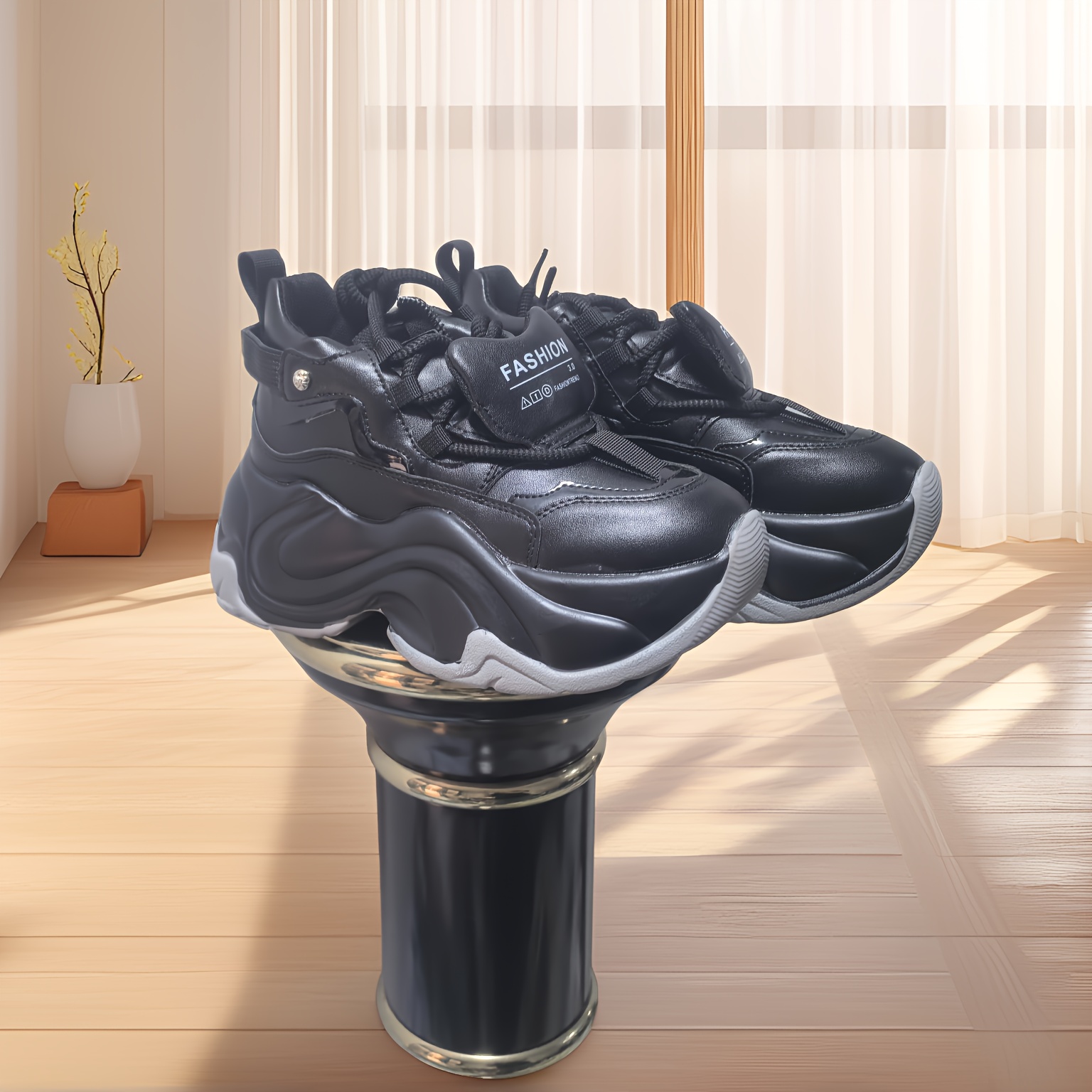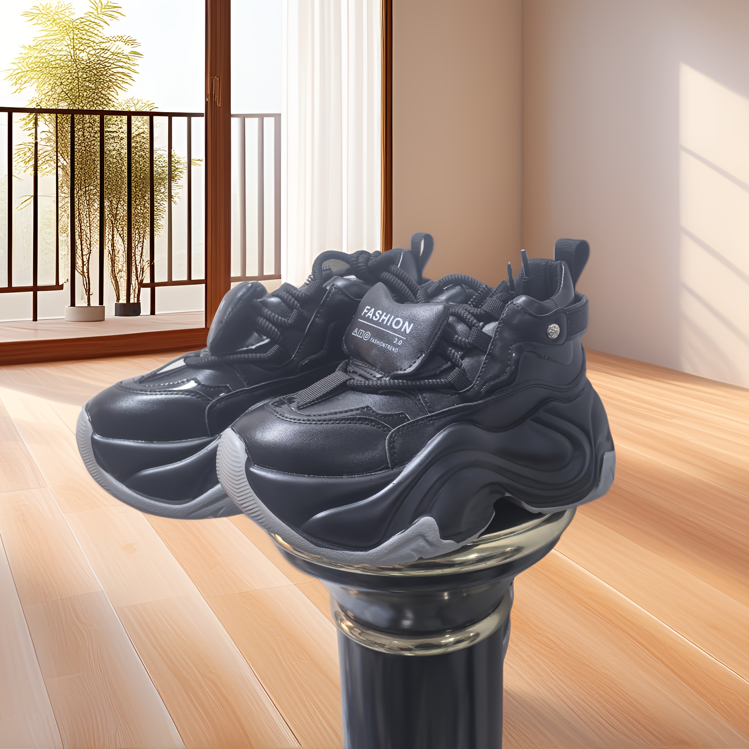 Women's Retro Chunky Platform Dad Sneakers - Lace-Up Low-Top Casual Shoes with Synthetic Cover Upper & Rubber Sole, All-Season Comfort for Casual Attire, Vintage Shoes, Sleek Shoe Design, Fabric Lined Interior