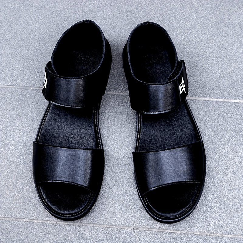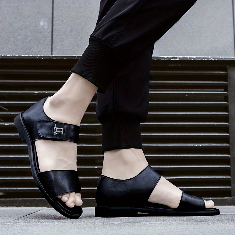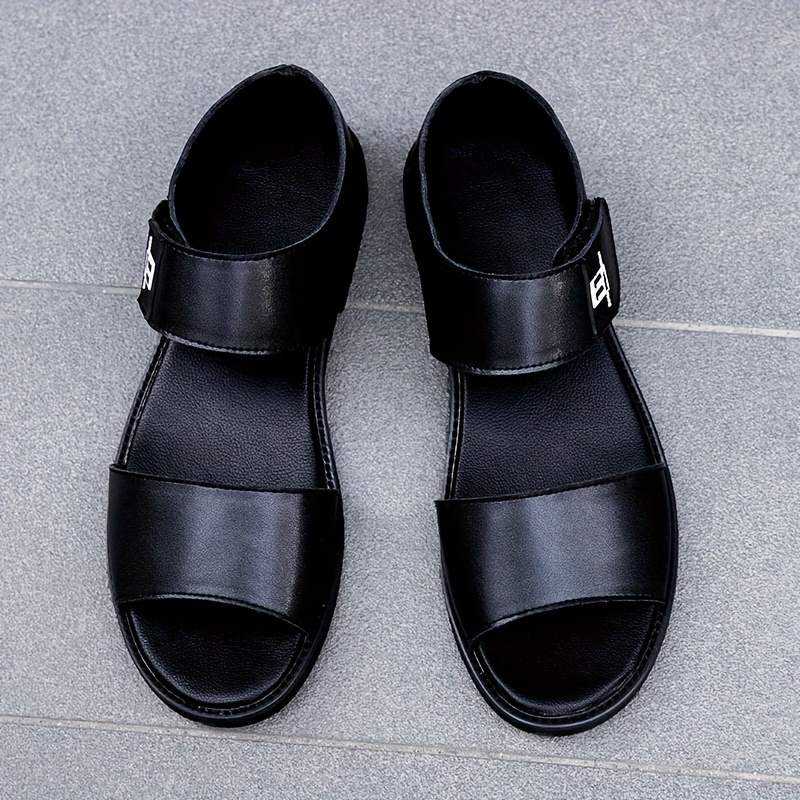 [Breathable Summer Sandals] Men's Genuine -like Strap (Second-Layer Cowhide) Adjustable Hook-and-Loop Sandals - Black Cushioned PU Insole & Non-Slip Rubber Sole - Breathable Summer Beach for Casual, Pool, Walking - Round-Toe Dress Sandals (No Laces)