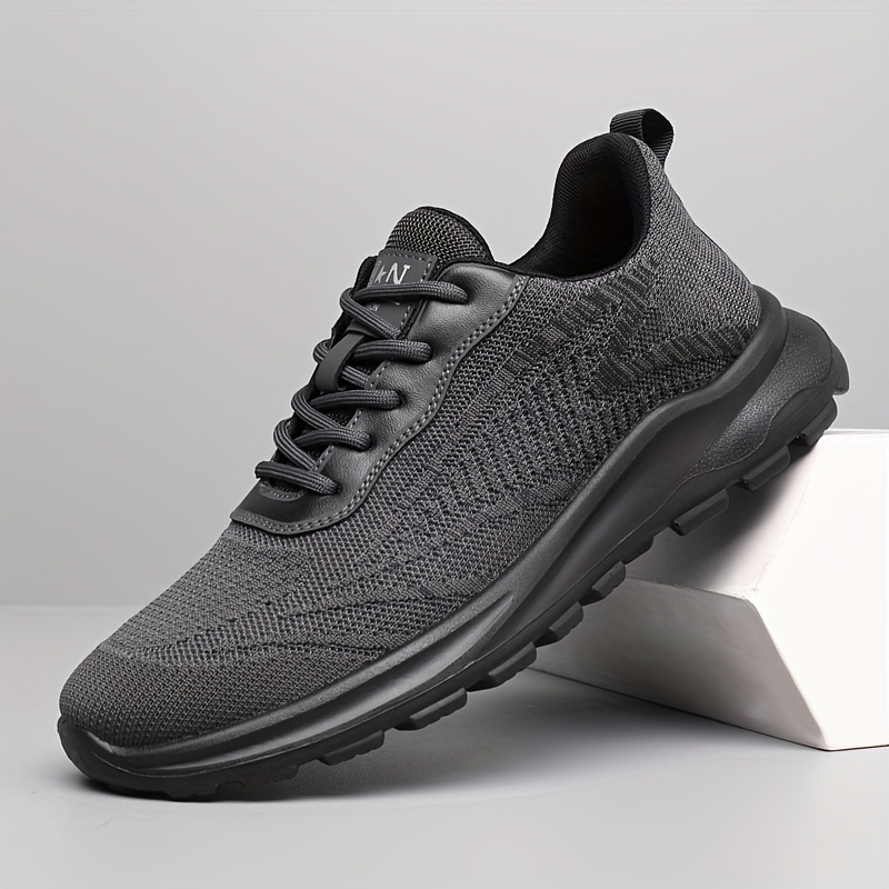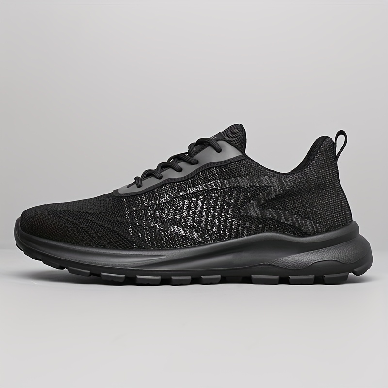 Men'S Breathable Knit Sneakers - Low-Top Casual Sneakers with Faux Upper, Fabric Lining & Durable Sole for Casual Attire, Gym, Skateboarding - Black, Sneakers, Gym Footwear, Sleek Shoe Design, Flexible Footwear