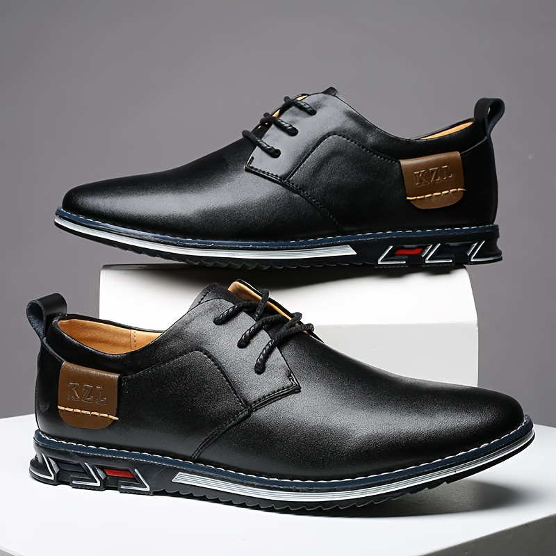 Men's Casual Business Shoes - Stylish Black Microfiber, Rubber Sole, Lace-Up Design with Round Toe, Suitable for Daily and Leisure Wear, Comfortable All-Season