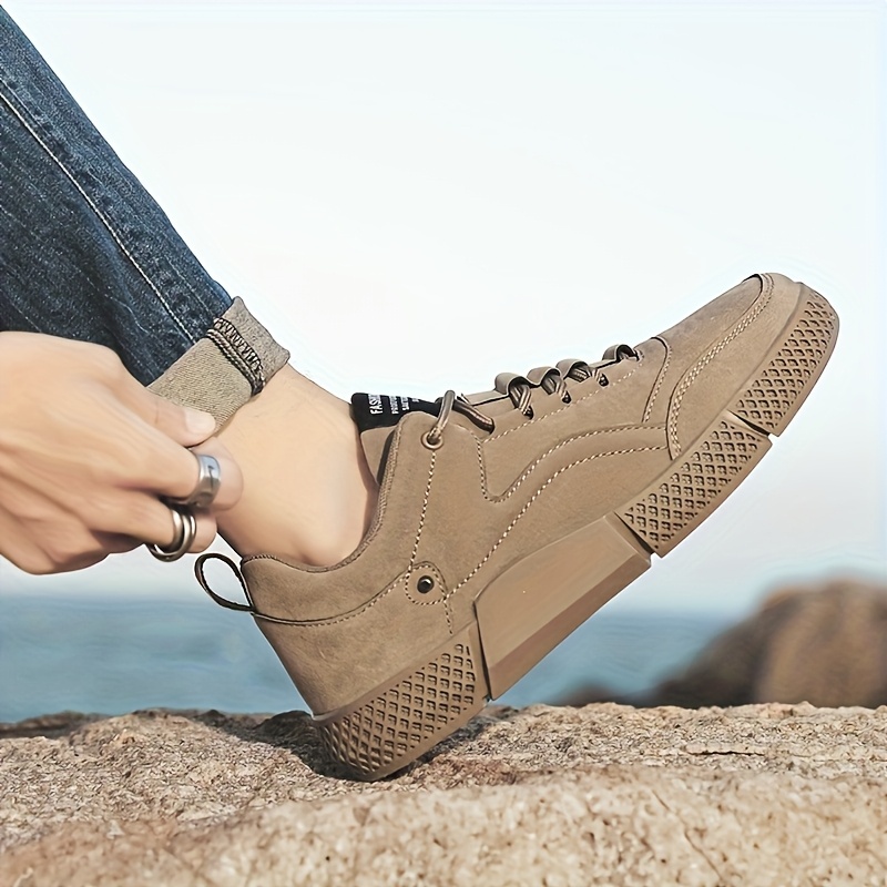 Men's Lace-Up Skate Shoes - Thick Cushioned Sole, Durable PU Upper & Rubber Outsole, All-Season Low-Top Casual Sneakers in Khaki for Outdoor & Daily Wear