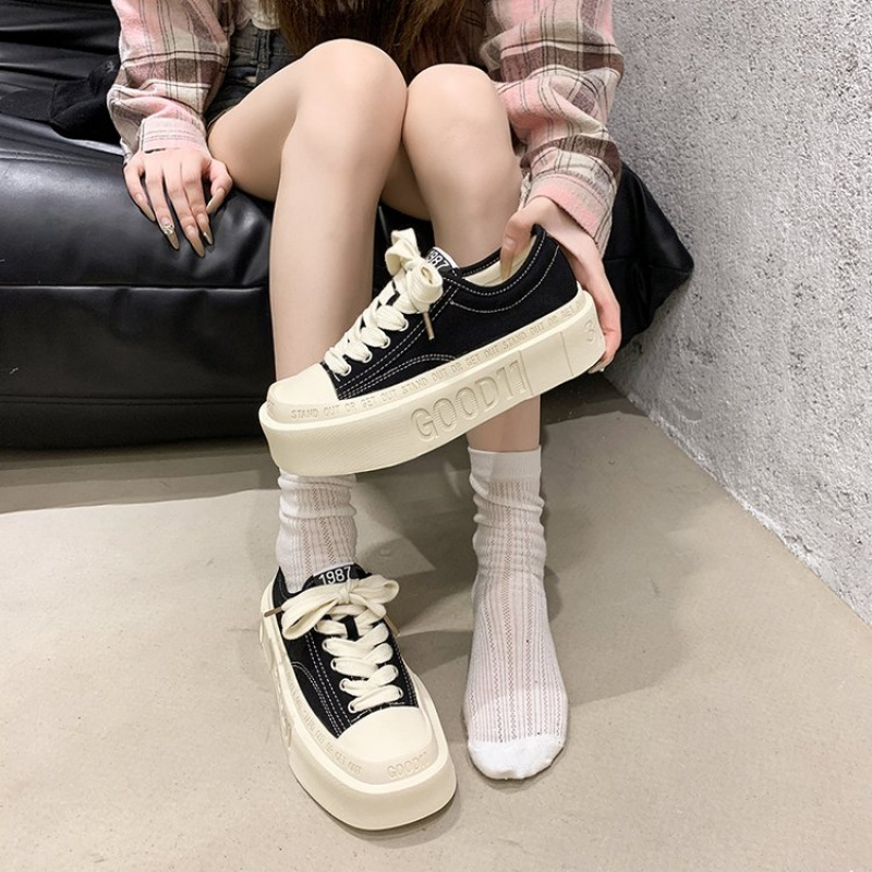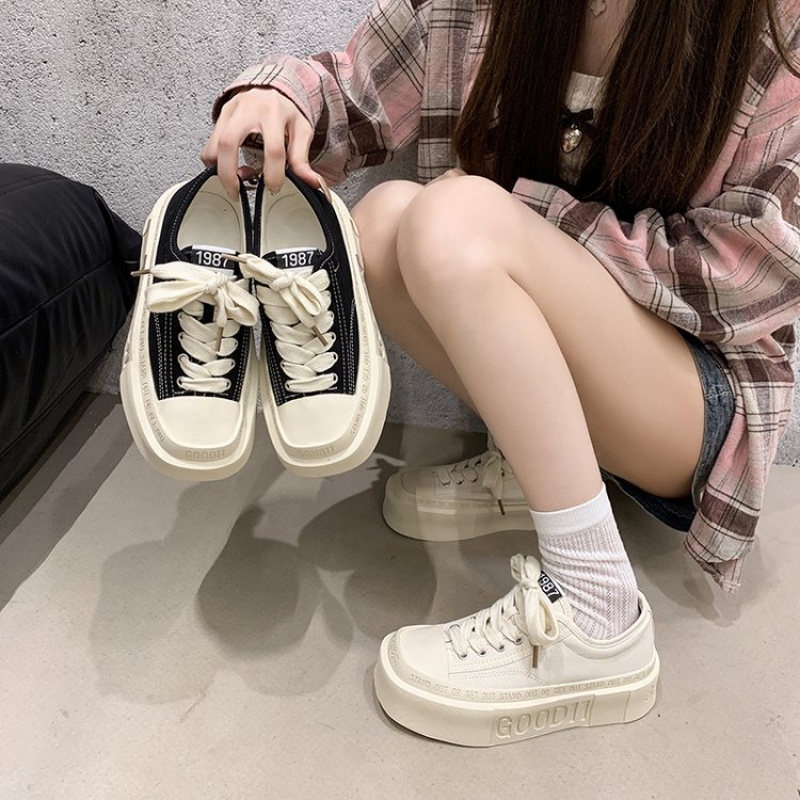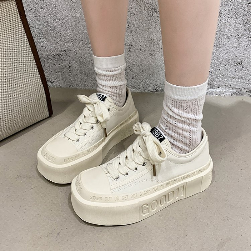 Women'S Chunky Platform Shoes - Low-Top Lace-Up Shoes with Cushioned Insole, Non-Slip Rubber Sole - Beige/White/Black/ - Everyday & Formal Outfits