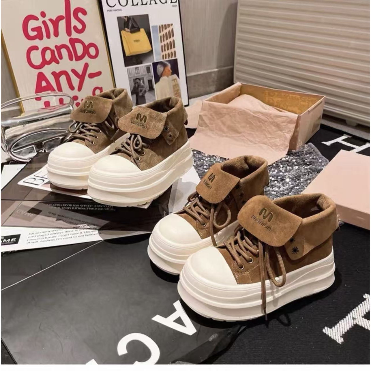 Women'S Chunky Platform Sneakers with Thick Platform Heel - Chunky Sole High-Top Round Toe PU Cover Upper, & Brown Retro Chunky Heel, Cushioned Insole & Arch Support, All-Season Casual Shoes for Casual Attire, Versatile Two-Way Wear (Flip-Flop Style